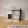 Escritorio de melamina de un tamaño ideal para ubicarlo en cualquier rincón de la casa. Contiene dos cajones para organizar tus apuntes o material de trabajo.